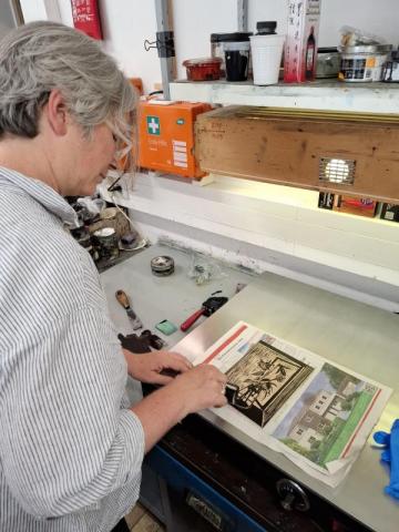 L’installation d’une première presse à taille douce (cylindre d’une largeur de 80 cm) et le matériel de base sont financés par les membres fondateurs et par une aide du Fonds Culturel National. Entretemps l’installation est complétée, notamment par une deuxième presse à taille douce et une presse typographique et des caractères en plomb.