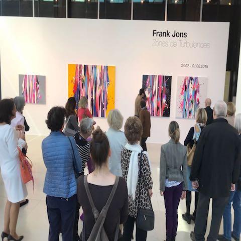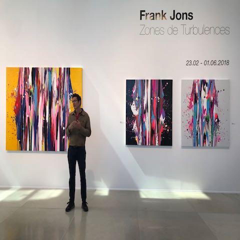 "Zones de Turbulences », le titre de l’exposition de l’artiste Frank Jons donne le ton. De sa peinture, l’artiste dit qu’ « elle est un engagement physique. Une lutte permanente où se côtoient et s’entrechoquent la rage, la tendresse, la tristesse, l’amour, la joie. Je suis au-dessus de la toile, je tourne autour, je fais corps avec elle ».