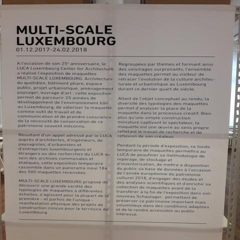 A l’occasion de son 25è anniversaire, le LUCA Luxembourg Center for Architecture organise du 1er décembre 2017 au 24 février 2018, l’exposition de maquettes MULTI-SCALE LUXEMBOURG.