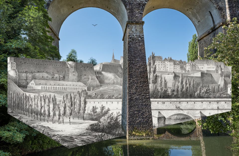 Le Musée Dräi Eechelen participe pour la première fois à la Biennale du Mois européen de la photographie en exposant dans le cadre de la 10e édition un projet inédit de l’artiste luxembourgeois Yann Tonnar. Ce projet repose sur une série d’images composites inspirées des neuf lithographies publiées en 1828-1829 sous le titre Vues de Luxembourg – dont six dessins de Jean-Baptiste Fresez (1800-1867) et trois réalisés par son élève Jean-Nicolas Bernard (1803-1866).