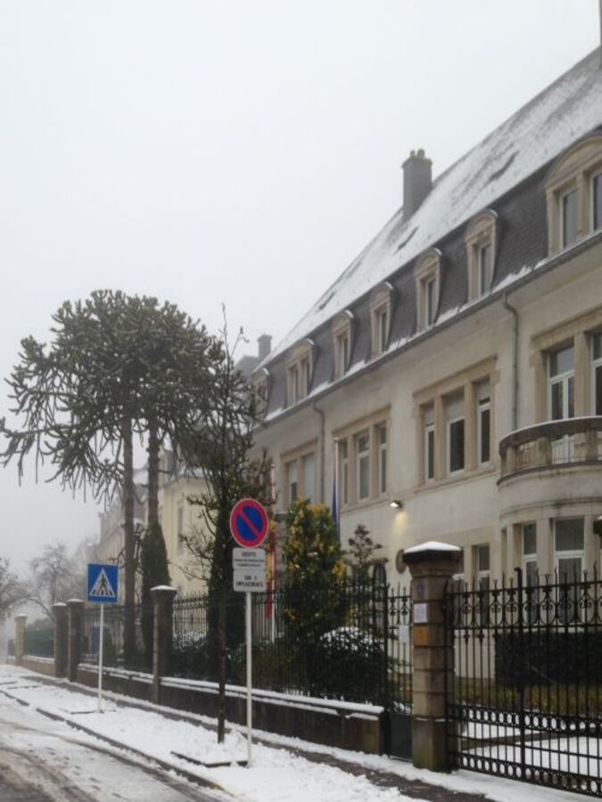 Ce sont deux immeubles construits en 1921 par le célèbre architecte luxembourgeois Georges Traus qui sont aujourd’hui le siège de l’ambassade du Royaume d’Espagne.